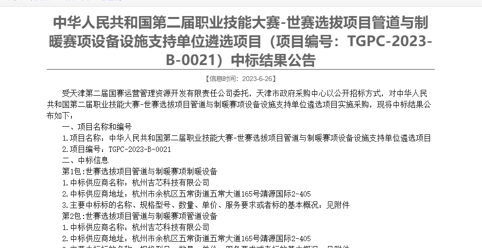 熱烈祝賀我司“職教事業(yè)部”,順利通過(guò)“中華人民共和國(guó)第二屆職業(yè)技能大賽-世賽選拔項(xiàng)目管道與制暖賽項(xiàng)設(shè)備設(shè)施支持單位”遴選,屆時(shí),我司將全力做好賽事設(shè)備、技術(shù)保障及支持工作,預(yù)祝中華人民共和國(guó)第二屆職業(yè)技能大賽舉辦取得圓滿成功。